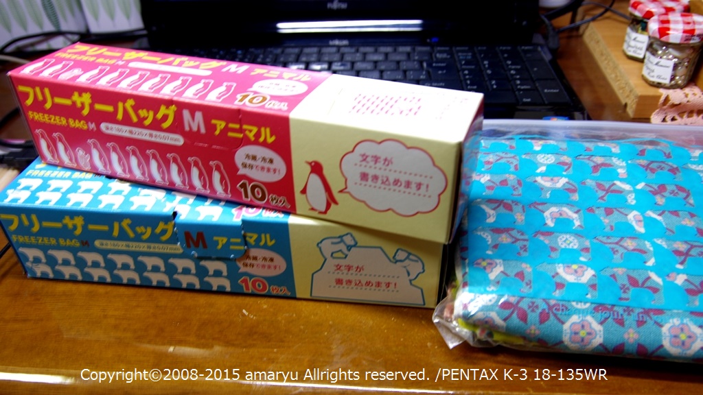 seriaで買った台所用のジッパーに生地の種類ごとに入れて