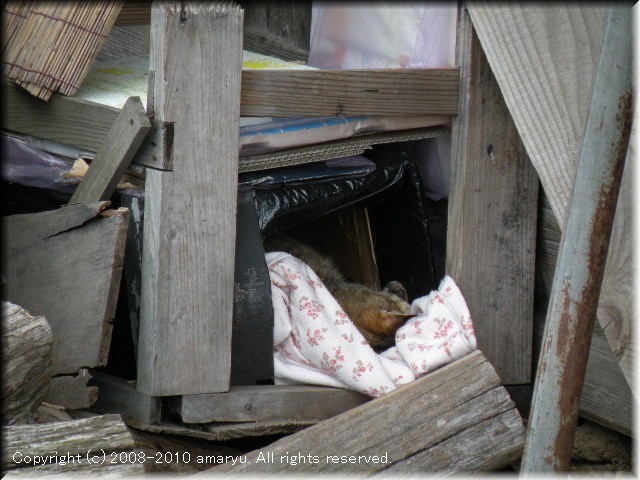 廃墟に住みついたほっしゃん。彼を気にかけている誰かがわたしの他にもいるのだ。